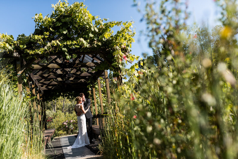 Hans Fahden is a stunning property tucked away along Petrified Forest Road in Calistoga. It features a beautiful pond filled with lily pads and a stunning garden to hold more intimate ceremonies. The receptions are typically held in the estate cave with dancing continuing out in the pavilion.